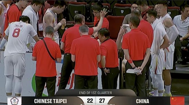 北京时间3月1日,世预赛第二窗口期小组赛,中国男篮与中国台北男篮在中立球场展开对决。中国男篮借助内外开花攻势首节领先5分,但次节一度被陈盈骏率队反超比分,中国男篮随后夺回领先优势,刘铮超远三分反超,上半场结束中国男篮50-51落后中国台北男篮。