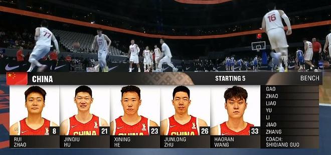 2026年3月1日中国队对阵中国台北,我们的先发不变,赵睿、胡金秋、贺希宁、朱俊龙、王浩然。