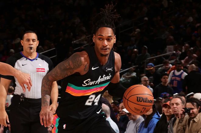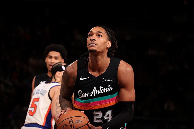 本场比赛中,虽然马刺遭遇了一场惨败的,但是球队的先发侧翼球员德文-瓦塞尔(Devin Vassell)的表现也算是比较可靠的。瓦塞尔全场出场34分59秒,投篮14中7,三分线外9中3,罚球3中1,得到了18分7篮板3助攻1抢断的数据,还有2次失误和3次犯规,正负值也是达到了全队最高的-2。瓦塞尔在进攻端还是保持了尚可的手感,他也是全队出手次数较多的球员中唯一一名投篮命中率达到五成的球员,他也是通过各种方式拿下了不少分数,起到了应该起到的作用。瓦塞尔在防守端的表现也是比较稳定的,也没有出现什么太大的问题。总体来看,瓦塞尔也算是在攻防两端都发挥出了自己的实力了。可惜马刺其他球员的表现普遍都惨不忍睹,瓦塞尔的努力也是没有办法收到回报。