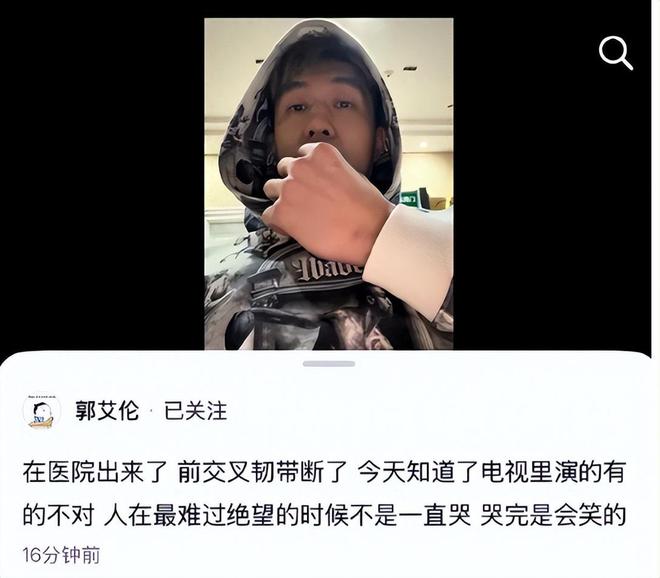 比赛结束之后,郭艾伦在个人社交账号上发布了一条视频,专门回应了自己的情况,并官宣了伤情:前交叉韧带断了。