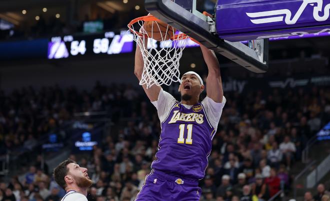 3月6日消息,今天NBA常规赛继续进行,湖人113-120不敌掘金。回顾本场比赛,湖人依旧是开局慢热,被掘金首节就拉开了分差。不过虽然湖人首发效率不高,而且艾顿还伤退了,但是替补却打得非常不错。替补中锋海斯,两大射手八村塁和肯纳德都站了出来,再加上湖人今天三巨头的防守和失误控制不错,所以湖人继续续命迫近分差,将悬念留到末节。但是到了比赛最为关键的第四节,湖人攻防两端都出了问题,防不住约基奇,自己进攻也掉链子了,最终遗憾输球了。