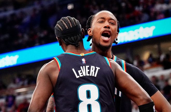活塞:杜伦30分13板2帽、坎宁安17分8板15助3断、萨瑟16分3板2助、罗宾逊14分6板4助、霍兰12分4板。