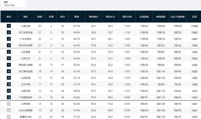 CBA积分榜最新排名!上海14连胜稳居第一,广东复仇江苏杀回前三