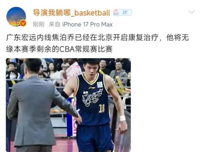 广东男篮遭遇双重打击,焦泊乔常规赛报销,签新大外援的事也黄了