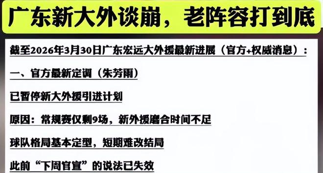 除了焦泊乔或会缺席接下来的常规赛外,广东男篮在选择新大外援方面也有了最新消息。据悉广东男篮已经停止了签约新外援的计划,本赛季不会再签其他外援了,会让目前的四名外援打到底。至少目前的消息应该是这样的,后面是否还会有变化还无法确定。