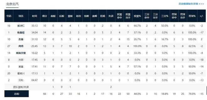 在和浙江男篮的对阵中,北京男篮打了一场非常糟糕的比赛,结果是以66-81不敌对手。这场比赛的强度非常大,两队首节比赛的表现旗鼓相当。不过到了第二节比赛的下半节,北京男篮陷入了得分荒,浙江男篮趁机超出了比分。此后浙江男篮就完全掌控了比赛局面,一度获得了20分的巨大优势,最终大胜了北京男篮。