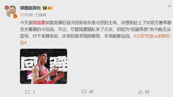 绝了!CBA回避条款!禁止陈国豪大战北控队