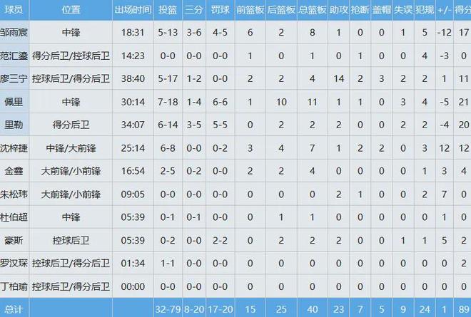 此役北控队五人得分上双,中国男篮主力后卫廖三宁虽铁投篮17中5,但送出14次助攻外加11分4板2断3帽,强势填满数据栏。