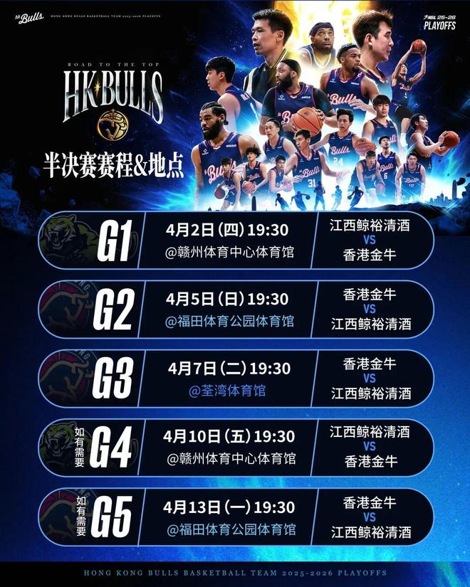 届时半决赛和总决赛均采用五场三胜制,常规赛排名靠前的球队拥有三个主场,主场设置为1-2-1-1,两组对阵分别是香港金牛VS江西鲸裕清酒、合肥狂风VS上海玄鸟。