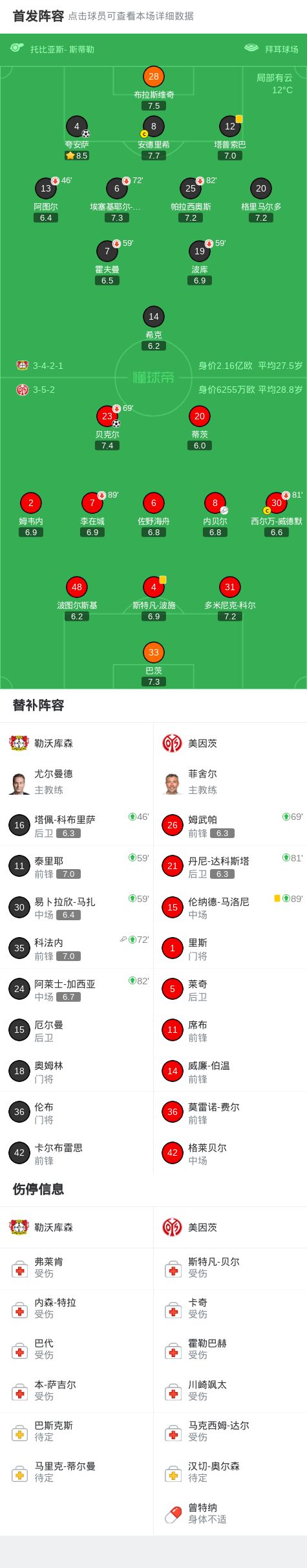 勒沃库森1-1美因茨,贝克尔破门,夸安萨绝平