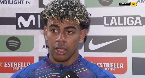 巴萨主场4-1战胜比利亚雷亚尔,亚马尔上演职业生涯首个帽子戏法,赛后亚马尔接受了Esport3的采访。
