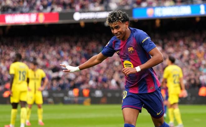 比赛开打之后,巴萨就在主场球迷的助威声中,朝着黄潜的球门发起了潮水一般的进攻,第28分钟费尔明抢断后送出直塞,亚马尔单刀推射建功,帮助巴萨取得了1-0的领先,第37分钟亚马尔右路单挑防守球员,强行内线杀到禁区后兜射远角,将领先的优势扩大到了2球。