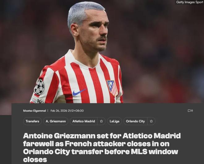 塞尔电台消息,格列兹曼即将离开马竞加盟奥兰多城。