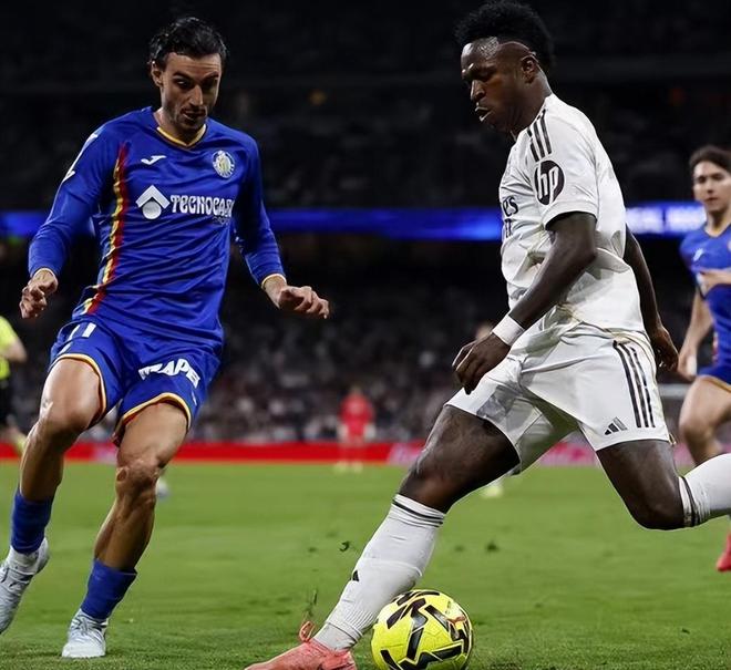 对阵赫塔费,皇马球星姆巴佩继续因伤缺阵,阿韦洛亚使用了4231的阵型,贡萨洛-加西亚单前锋,巴尔韦德、居莱尔、维尼修斯在前场;两个后腰是楚阿梅尼和皮塔奇,后防线是阿诺德、吕迪格、阿拉巴和卡雷拉斯,门将依然是库尔图瓦。比赛开始,实力占优的皇马主动出击,第2分钟维尼修斯在禁区就获得了射门的机会,可惜低射没有命中目标。第13分钟,维尼修斯再次获得了机会,皇马上场抢断得手,维尼修斯得球依靠速度狂飙,可惜他的单刀被门将索里亚挡出。