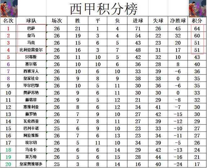 西甲最新积分战报 姆巴佩又是个伤心的赛季?皇马连败落后巴萨4分