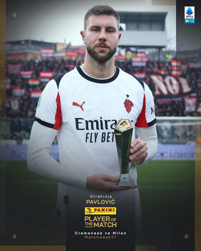 官方消息,帕夫洛维奇当选克雷莫内塞对阵米兰一役全场最佳。