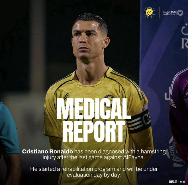 利雅得胜利官方宣布,葡萄牙球星C罗在上一场对阵费哈的比赛后被诊断为腿筋受伤,他已经开始康复计划,并将接受每日评估。