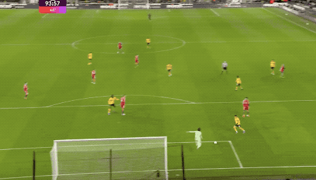 第94分钟,神剧情上演,阿利松开球被拦截,特林达德的射门打在戈麦斯的腿上变向,弹进球门。