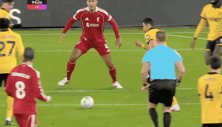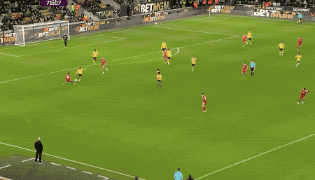 第78分钟,狼队打出快速反击,阿洛克达尔赢得了与范戴克的对抗,罗德里戈·戈麦斯破门得分。
