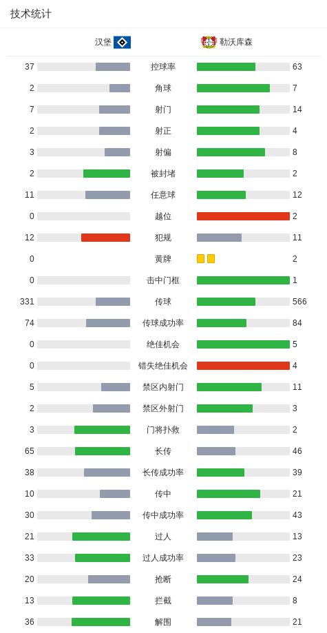 半场:汉堡0-0勒沃库森,格里马尔多造险