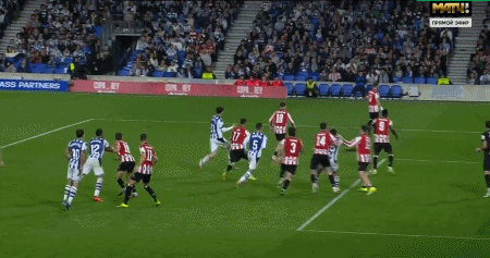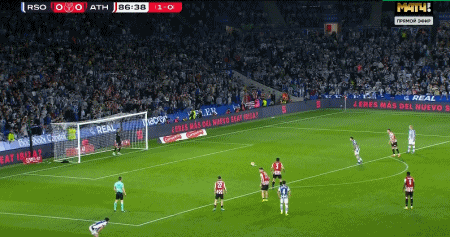 第87分钟,埃雷拉造点,奥亚萨瓦尔主罚点球命中,皇家社会1-0毕尔巴鄂