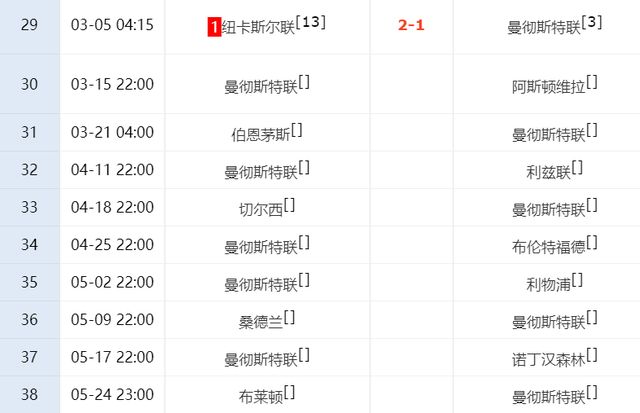 根据赛程安排,曼联下一轮比赛将在主场对阵维拉,万一输掉比赛,曼联随时会跌出前四。在后面的比赛中,曼联还将对阵切尔西和利物浦,这3场硬仗的结果,随时将决定曼联本赛季的争四命运。一旦这3场争四大战输给对手,很可能导致曼联痛失欧冠资格,无缘下赛季欧冠!