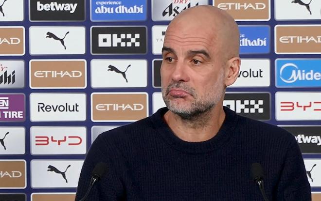 英超第29轮,曼城主场2-2战平诺丁汉森林,赛后,曼城主帅瓜迪奥拉出席新闻发布会接受媒体提问。