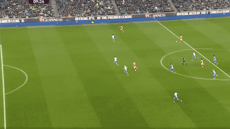 第31分钟,谢尔基右路突进传中,塞门约凌空端射破门,曼城1-0领先。冬窗加盟后,这位边锋12场比赛7场有进球,外加2次助攻,效率惊人,瓜迪奥拉真的是捡到宝。