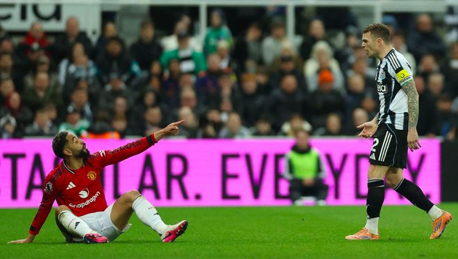 不过,人数处于劣势的纽卡斯尔在上半场补时得第6分钟取得进球,戈登刚刚突入禁区,B费从身后将其放倒,裁判判罚点球。