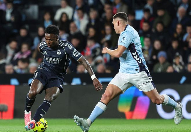 第77分钟,皇马换上贡萨洛-加西亚,换下卜拉欣-迪亚斯。第86分钟,阿斯帕斯的射门击中立柱。皇马逃过一劫。补时阶段,巴尔韦德外围远射,皮球被挡了一下发生折射,钻入球门。皇马完成极限绝杀!最终,皇马2-1险胜塞尔塔。争冠形势大乱,前2只差1分,皇马稍稍落后。