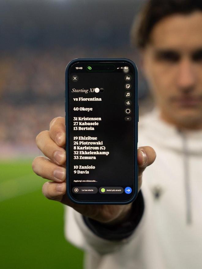 通常情况下,多数俱乐部赛前都是通过社交媒体发布特制海报的方式公布自己的首发名单,而乌迪内斯在他们与佛罗伦萨的比赛开始前则是通过给一台写有比赛首发阵容的手机进行拍照的方式公布首发11人,这样的方式无疑更为特别和新颖。