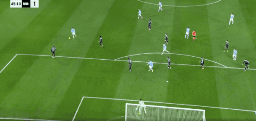 第11分钟,皇马开出战术角球,居莱尔倒三角传中,琼阿梅尼无人盯防,推射击中立柱,弹进球门。