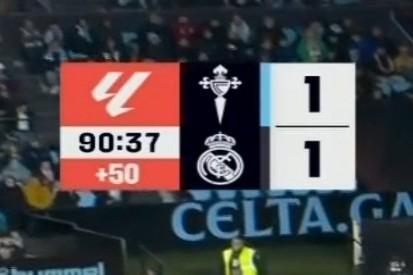 多少?皇马vs塞尔塔导播在记分牌上给了50分钟伤停补时