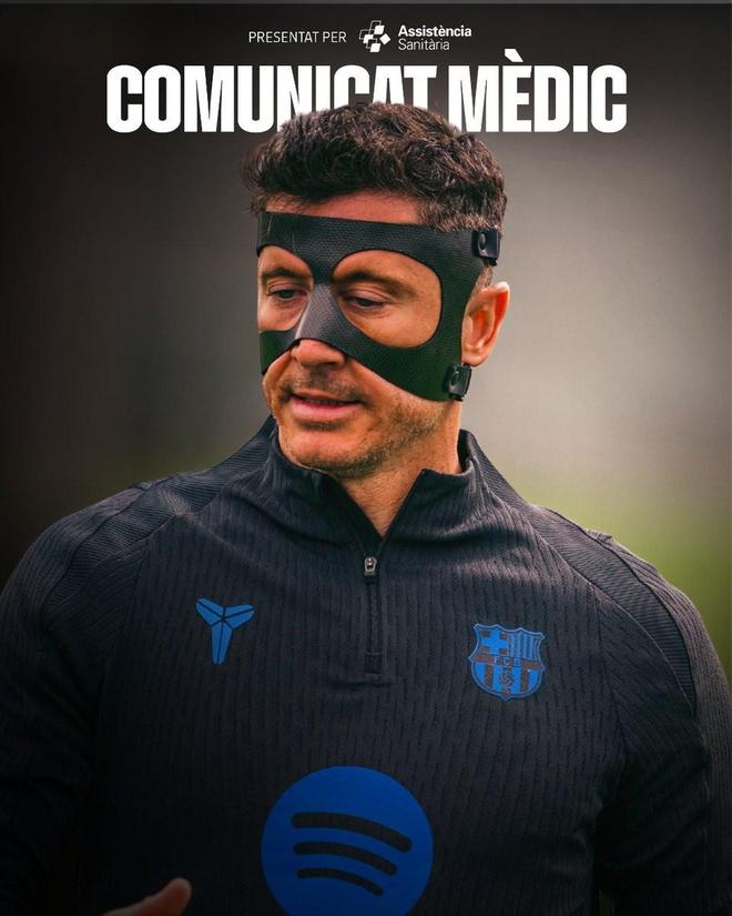 巴萨官方:此前眼眶受伤的莱万已获得队医出战许可
