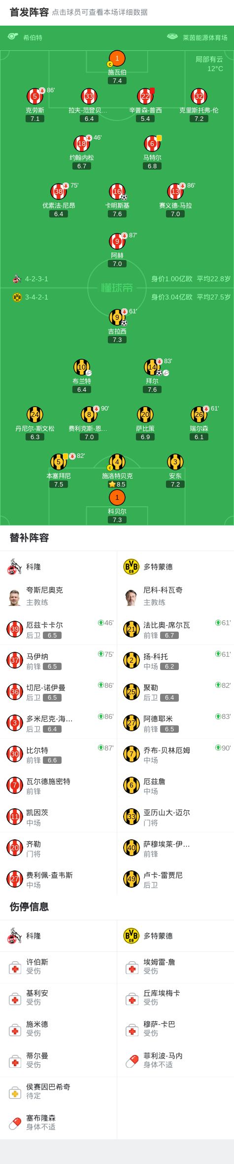 第60分钟,拜尔与布兰特配合后破门,多特2-0科隆