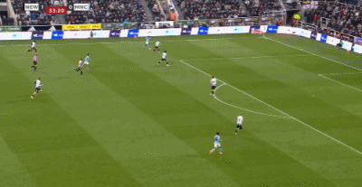 第18分钟,托纳利中路直塞,巴恩斯反越位,左路插上单刀兜射得手,纽卡斯尔打破僵局,1-0!