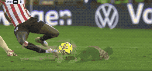 第23分钟,埃里克·加西亚和博伊罗对脚,两人都没有任何退缩,重重撞在一起,两败俱伤。