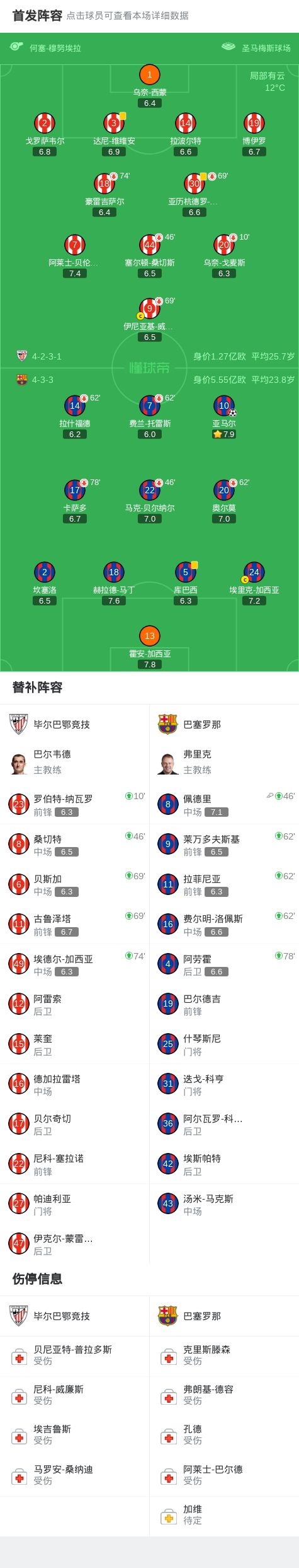 北京时间3月8日西班牙足球甲级联赛第27轮,毕尔巴鄂竞技主场对阵巴塞罗那。上半场,坎塞洛刚开场解围击中横梁,戈麦斯脚踝扭伤离场,伊尼亚基低射破门被判越位进球无效;下半场,佩德里助攻亚马尔内切兜射破门。最终比分毕尔巴鄂竞技 0-1 巴萨。