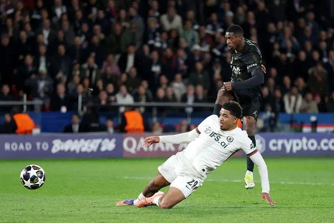 事实就是如此,比赛开场后,巴黎迅速进入状态,但切尔西也是有备而来,反应能力超好。第10分钟,巴黎的进球来自前场球员的灵活换位,阿什拉夫·哈基米、德西雷·杜埃和巴尔科拉集中到中路,奥斯曼·登贝莱扯到右路,若昂·内韦斯禁区内头球回敲给巴尔科拉,后者左脚凌空抽射直挂横梁下沿。不过,第28分钟,切尔西通过一次界外球机会,由居斯托抓住防守漏洞将比分扳为1比1,当时巴黎后防线出现了较大的弱侧空当,被切尔西准确找到。