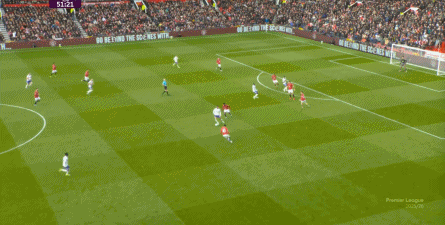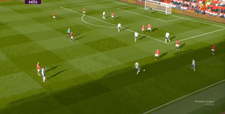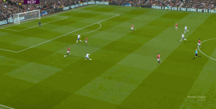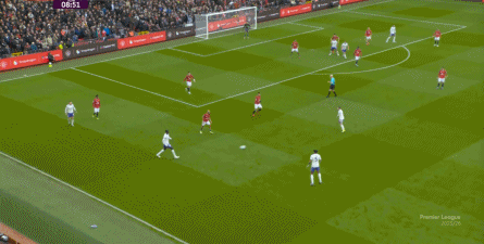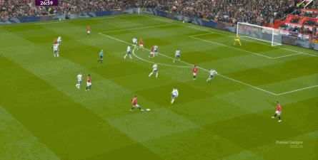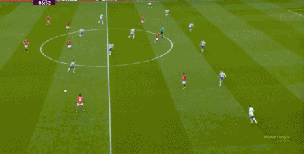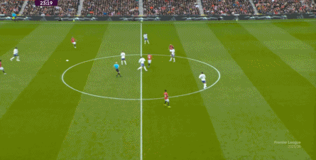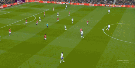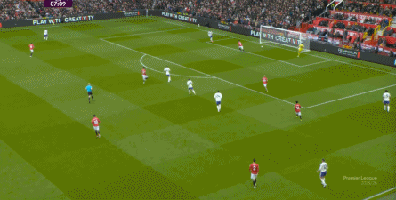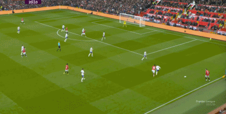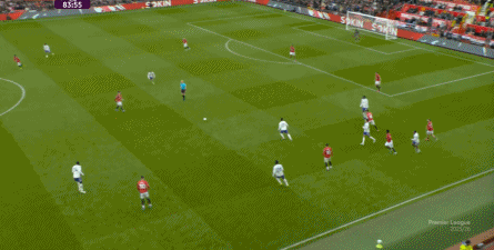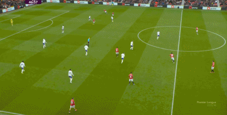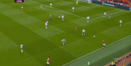 就在这次制造的前场界外球里,曼联转移到左路,从而制造了本场比赛的第一次进攻威胁,也就是上半场前半段只能打出来的传中: