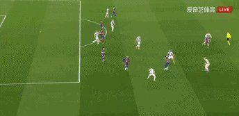 18’拉菲尼亚任意球吊入禁区,赫拉德·马丁头球摆渡,贝尔纳尔垫射得手,巴萨2比1。