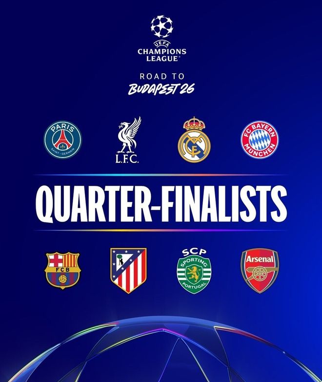 随着利物浦4-0+巴萨7-2纽卡!欧冠8强出炉:马竞淘汰热刺 拜仁10-2