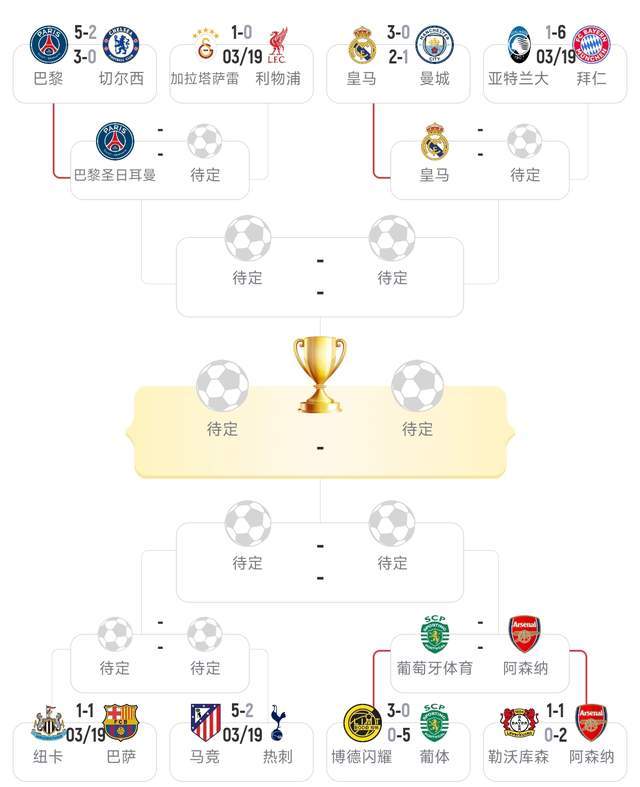 欧冠8强已出其4:曼城、巴黎、阿森纳、葡萄牙体育——明天凌晨再出4支球队。