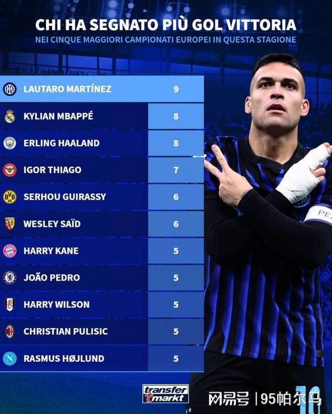 对阵科莫时,国米居然全场只有3次射门&射正次数为0,当思念是一种病时,劳塔罗的个人价值顺势得到了升华,值得一提的是,在本赛季五大联赛制胜球的次数上,劳塔罗(9次)将姆巴佩和哈兰德两位神锋比下去了。