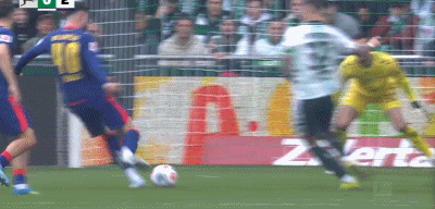 第90+4分钟,扳回一城,穆萨禁区内破门,不莱梅1-2莱比锡