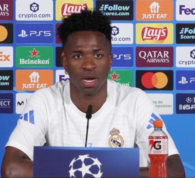 欧冠1/4决赛首回合,皇马将在主场迎战拜仁。赛前,维尼修斯出席了新闻发布会,谈及此前在国家德比和哈维-阿隆索冲突一事。
