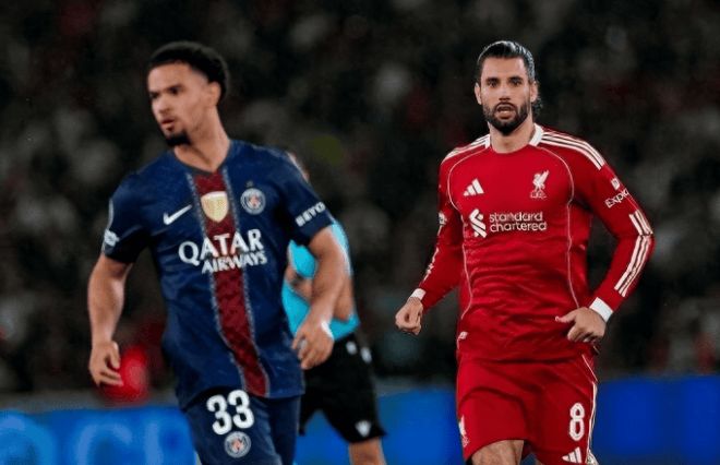 第11分钟,杜埃禁区弧顶轻巧转身兜射,皮球击中后卫腿部变线入网。这个带着运气的进球,如实反映了两队状态差异。第65分钟,若昂·内维斯送出穿透性直塞,克瓦拉茨赫利亚反越位成功,冷静过掉阿利松推空门,2:0。利物浦随后换上加克波和埃利奥特,但零星的传中无法威胁多纳鲁马。