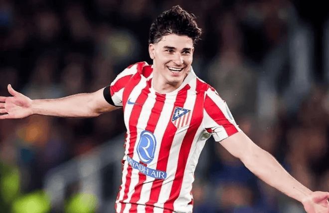更致命的还在后头。第45分钟,阿尔瓦雷斯站在任意球点前。那脚弧线球绕过人墙,越过特尔施特根的手指尖,钻入左上死角。1:0!这不仅仅是制胜球,更是历史性的时刻——阿尔瓦雷斯本赛季欧冠第9球,超越迭戈·科斯塔保持12年的8球纪录,成为马竞队史单赛季欧冠进球王。算上4次助攻,他直接参与13球,同样刷新队史纪录。