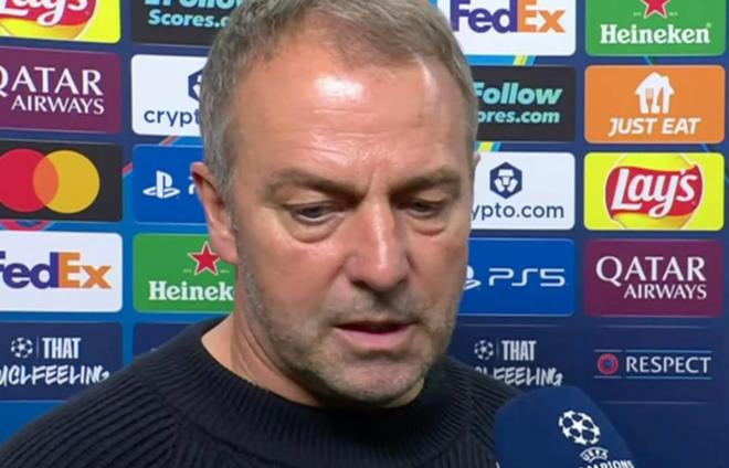 欧冠1/4决赛首回合,巴萨主场0-2输给马竞,巴萨主帅弗里克赛后接受了欧足联的采访。