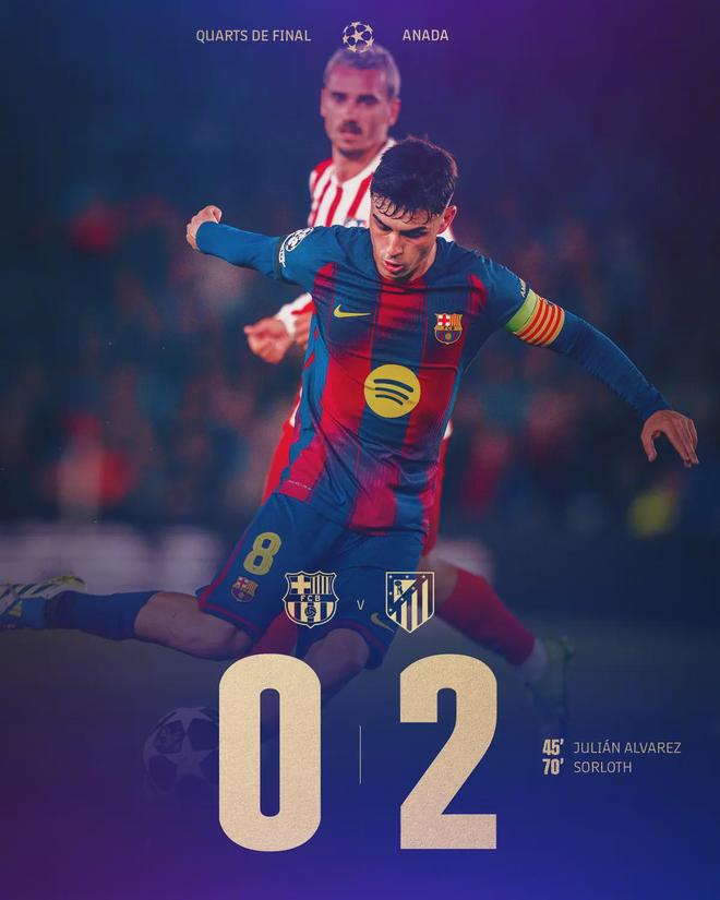 马竞用极致的效率证明了:在欧冠淘汰赛,铁血防守与务实反击永远比华丽的高位逼抢更具生存力。阿尔瓦雷斯的任意球世界波和瑟尔洛特的抢点,正是对巴萨防线漏洞的精准惩罚。